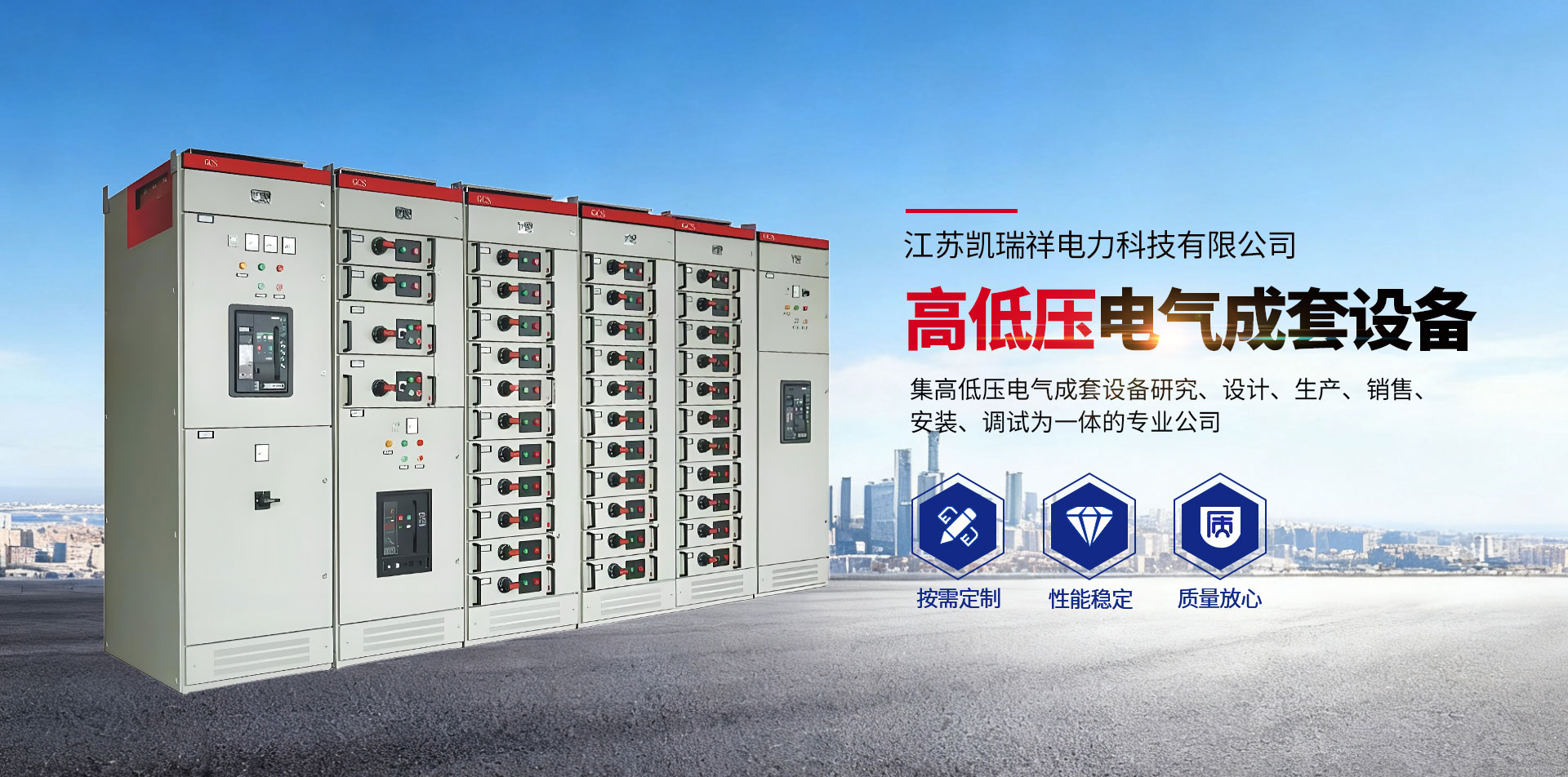 江蘇凱瑞祥電力科技有限公司座落在江蘇省阜寧縣:距風景區(qū)金沙湖沙灘浴場約5公里,是一家集高低壓電氣成套設(shè)備研究、設(shè)計、生產(chǎn)、銷售、安裝、調(diào)試為一體的專業(yè)公司。現(xiàn)有員工200余人,其中技術(shù)人員約占50%,固定資產(chǎn)近5000萬元,注冊資金5808萬元,占地面積約3.2萬㎡,建筑面積約1.86萬㎡。
